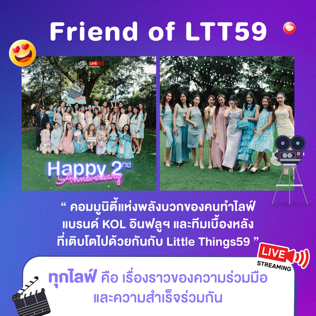 ทั้งแบรนด์, KOL, อินฟลูเอนเซอร์ และทีมเบื้องหลัง ซึ่งร่วมกันสร้างคอมมูนิตี้ที่เราเรียกว่า “Friend of LTT59”